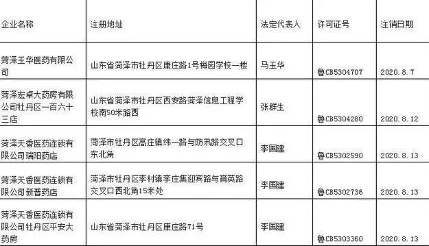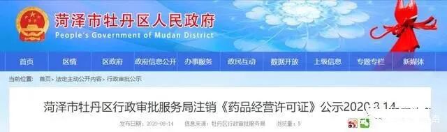 8月14日菏澤市牡丹區人民政府網(wǎng)站發(fā)布一則“菏澤市牡丹區行政審批服務(wù)局注銷(xiāo)《藥品經(jīng)營(yíng)許可證》公示,根據《中華人民共和國藥品管理法》及其實(shí)施條例、《中華人民共和國行政許可法》、《藥品經(jīng)營(yíng)許可證管理辦法》、《山東省藥品經(jīng)營(yíng)許可證注銷(xiāo)管理辦法》的有關(guān)規定,經(jīng)持證企業(yè)主動(dòng)申請,我局同意注銷(xiāo)以下5家企業(yè)的《藥品經(jīng)營(yíng)許可證》,特此公告。