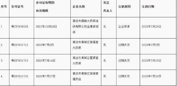 2020年7月31日,廣東省藥監局發(fā)布公告稱(chēng),已依法注銷(xiāo)清遠市清城區恒福堂大藥房等5家企業(yè)《藥品經(jīng)營(yíng)許可證》。