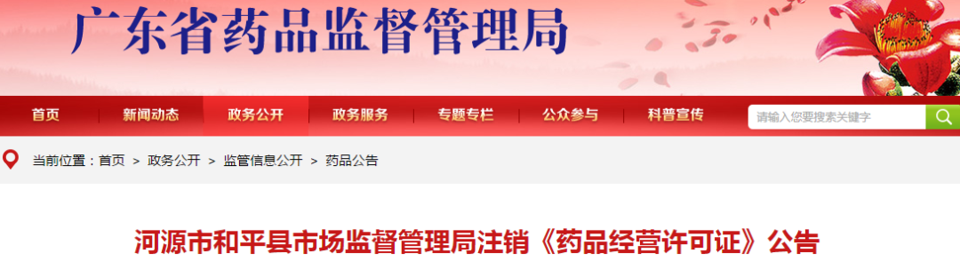 8月14日,廣東省藥監局發(fā)布了一則注銷(xiāo)《藥品經(jīng)營(yíng)許可證》的公告,5家藥店證書(shū)被注銷(xiāo)。